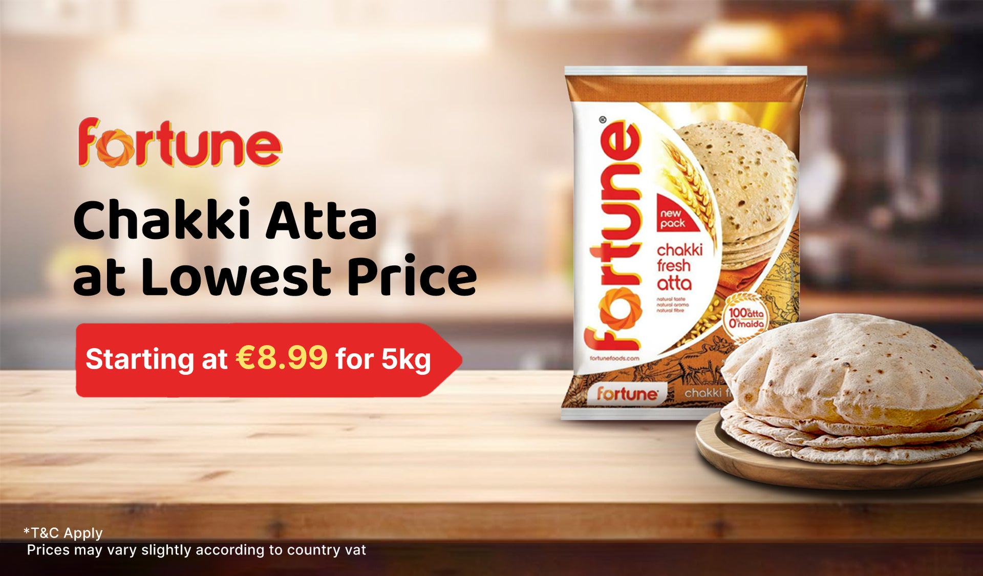 Fortune Chakki Atta / Whole Wheat Flour (5kg) - Export Pack !!