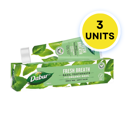 Basil, a natural antibacterial has been combined with herbs, in accordance with Ayurveda to give complete natural oral hygiene. Regular use and good oral hygiene with Dabur Herbal Basil Toothpaste will keep your teeth and gums healthy and free from germs.