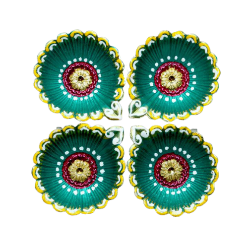 Add a touch of radiant elegance to your celebrations with our Fancy Diwali Diya set. This pack of four captivates with its shimmering teal and golden design, crowned by a brilliant centerpiece gem. A fusion of cultural beauty, they're the perfect luminous addition to European and Indian festivities. For a radiant Diwali, choose our diyas.