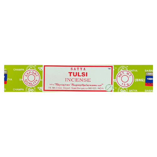 Embrace tradition and tranquillity with Satya Nag Champa Tulsi Agarbatti. This unique blend unites the beloved Nag Champa fragrance with the sacred essence of Tulsi, revered for its purifying and balancing properties. Experience a comforting and uplifting aroma as the rich, earthy notes of Nag Champa interlace with the refreshing greenery of Tulsi. The calming properties of Nag Champa work in unison with Tulsi's purifying influence, fostering a sense of peace, rejuvenation, and holistic wellbeing. Each long-lasting Satya Nag Champa Tulsi Agarbatti infuses your space with its delightful fragrance for hours. More than incense, it's an invitation to create a sanctuary for your mind, body, and spirit. Order yours today and embark on a journey of holistic wellbeing.