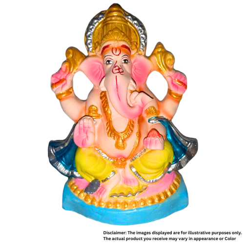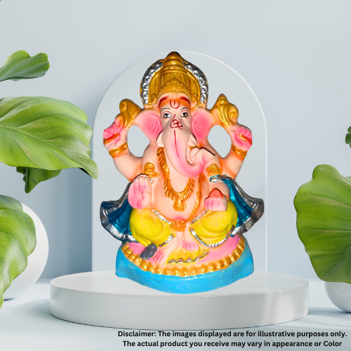 Presenting the Titwala / Golden Crown Ganesh Idol, a stunning 8-inch eco-friendly masterpiece. Embrace the divine aura of Lord Ganesh with this intricately designed idol, which exudes charm and serenity. Crafted from eco-friendly materials, it symbolizes reverence for nature while invoking spiritual blessings. The golden crown adorns the idol, representing majesty and prosperity. Invite positivity and auspiciousness into your living space with this exquisite idol. Let the Titwala / Golden Crown Ganesh Idol grace your home, bringing harmony and prosperity to your life. Embrace tradition and eco-consciousness with this divine addition to your sacred space.