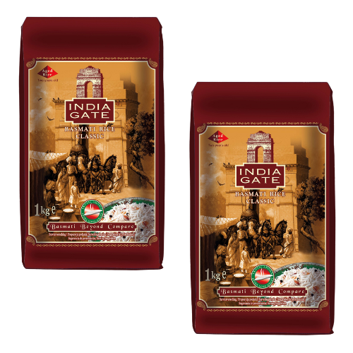 India Gate Classic Basmati Rice (Bundle of 2 x 1kg) - 2kg
