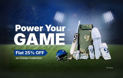 Enjoy Flat 25% OFF on our entire Cricket Collection - including bats, gloves, pads, helmets, kits, and more.