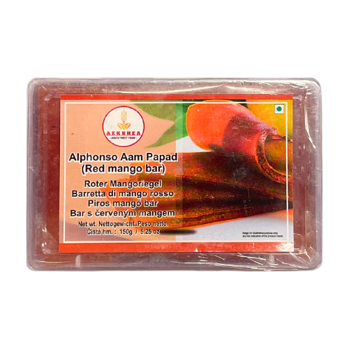 Escape to sunshine in every bite with Aekshea Alphonso Aam Papad (Red Mango Bar)! This all-natural candy bar captures the essence of the Alphonso mango – known for its superior sweetness and tang – in a delightful treat. Made with time-tested methods and real fruit, Aekshea offers a burst of sweet and tangy perfection, free from artificial colours or preservatives. Enjoy a taste of India with this traditional candy bar, perfect for satisfying your sweet tooth or sharing a unique flavour with loved ones.