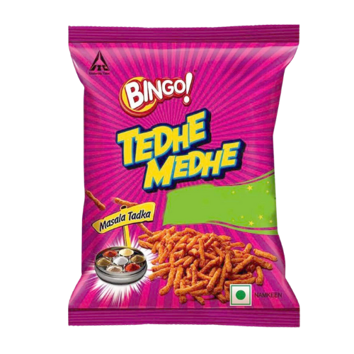 Forget boring snacks! Embrace the extraordinary with Bingo Tedhe Medhe Masala Tadka. These quirky, spindle-shaped chips combine dal, corn, and rice for a unique crunch unlike any other. The real magic lies in the masala tadka seasoning - a symphony of spices that explodes with every flavour-packed bite. Tangy, spicy, and aromatic, it's a masala mania that will leave you craving more. The twisted shape adds a fun twist to your snacking experience, making them perfect for parties and game nights. Bingo Tedhe Medhe Masala Tadka - Eat, Phir Repeat.