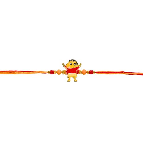 Celebrate the spirit of friendship and childhood nostalgia with Sinchan's Best Buddy Rakhi. Adorned with the beloved cartoon character Sinchan, this Rakhi will bring a smile to your little one's face. The vibrant colours and playful design capture the essence of innocence, making it the perfect choice for siblings who are best buddies for life. Let the bond of love and friendship flourish this Raksha Bandhan with our delightful Sinchan's Best Buddy Rakhi. Celebrate Raksha Bandhan with Dookan.